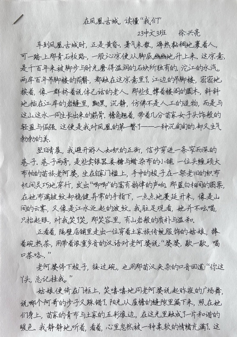 文学院将持续激励学子以笔尖传真情、以创作促融合,为构建和谐包容的校园文化注入团结底色,贡献青春力量。