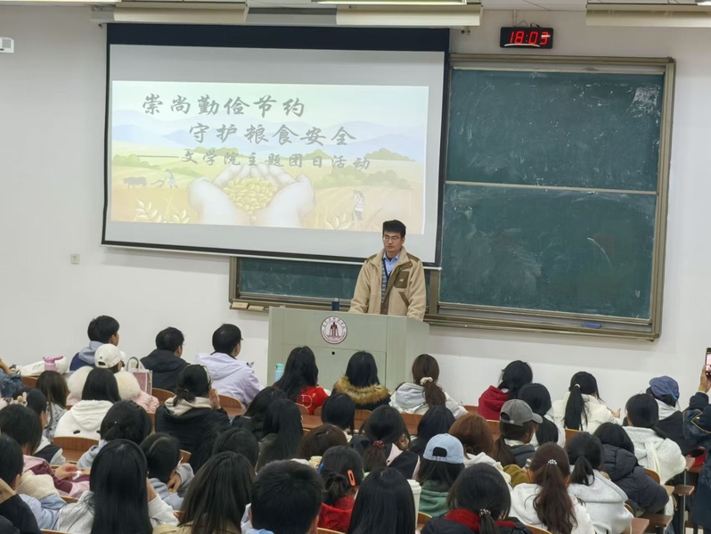近日,文学院面向2025级团员开展“节约粮食,从我做起”主题教育活动。活动旨在弘扬勤俭节约的传统美德,引导学生结合专业特色,深入理解中华文化中的节约精神,自觉践行青春节粮行动。